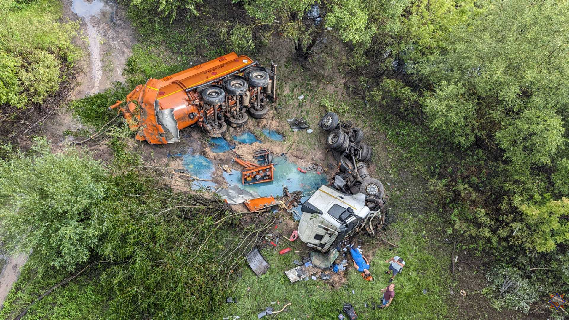 Когда к месту вызова прибыли подразделения МЧС, из одной из секции происходило истечение топлива. Для предотвращения возгорания была создана пенная подушка. ДТП произошло в 100 метрах от Днепра, в затоне реки наблюдалась маслянистая пленка. Оперативно работники МЧС и РУП «ПО «Белоруснефть» установили боновые заграждения с внесением сорбента, что ликвидировало возможность распространения пленки по реке.