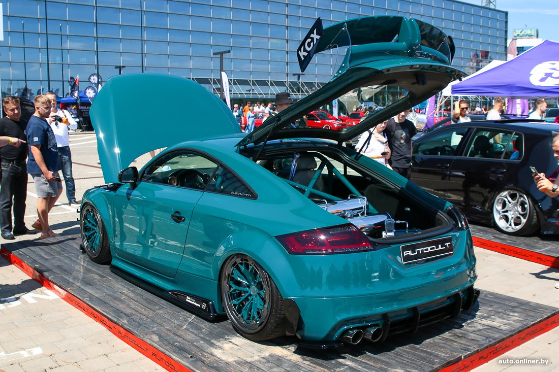 Эта Audi выпущена 2006 год выпуска, и, пожалуй, это самая запоминающася «тэтэшка» в Беларуси. Она уже мелькала на гродненской «Лакацыі», и вот вновь решила порадовать глаз автолюбителей на AutoCult.
