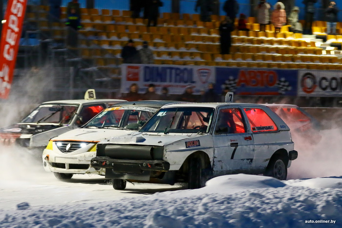 Почти два десятка специально подготовленных машин соревновались на ледяной дорожке стадиона «Заря».