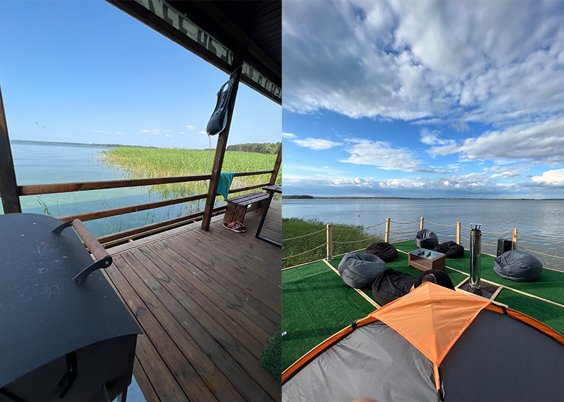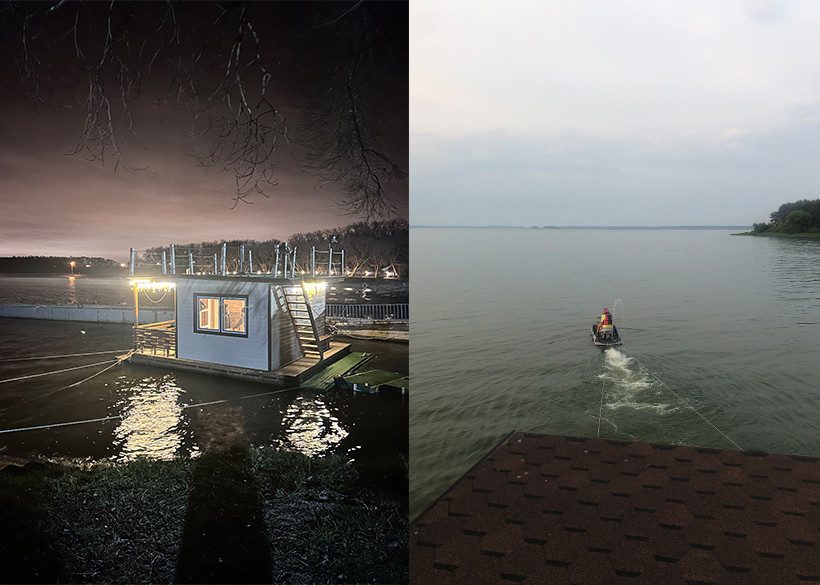 — Идея построить плавучий дом возникла спонтанно: хотелось иметь место для отдыха вдвоем или небольшой компанией. Конечно, это была своего рода авантюра, благо супруга поддержала начинание, — рассказывает Антон, хозяин «плота». — Зимой 2023 года мы вместе с ней сели за чертежи. И, к нашему удивлению, разобрались, все получилось. Домик возводили своими силами, а вот для формирования каркаса всей постройки и отделки парилки уже приглашали специалистов.