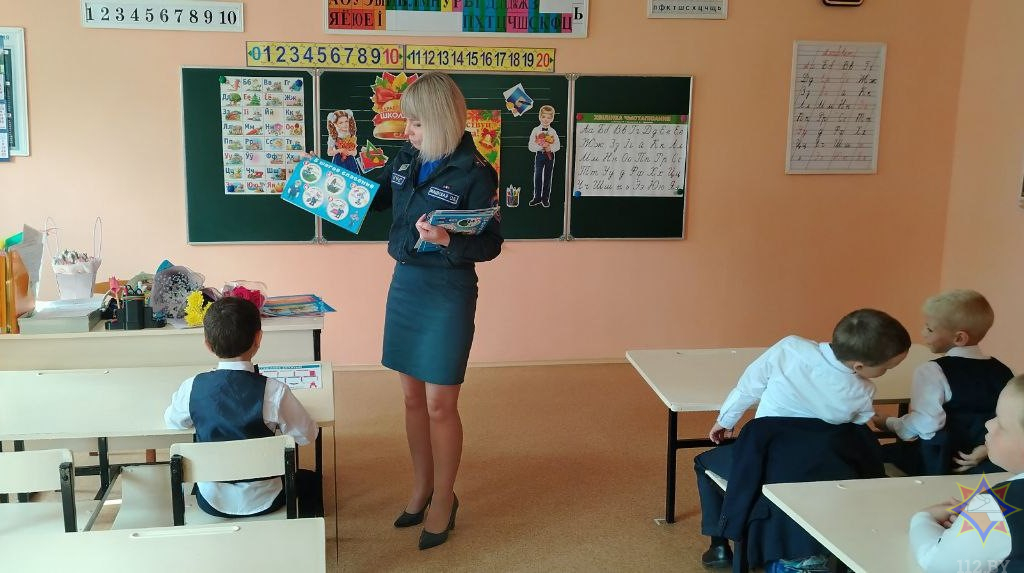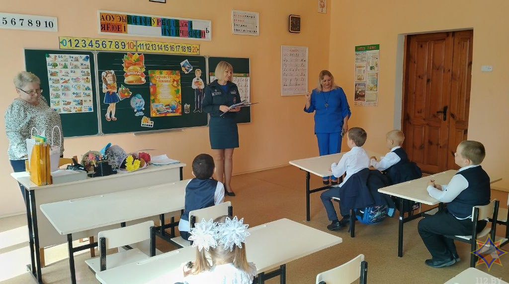 В рамках республиканской акции «В центре внимания дети!» спасатели Несвижского райотдела по ЧС провели для первоклашек первый их урок – «Урок безопасности»