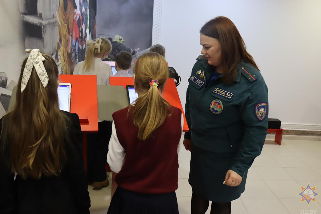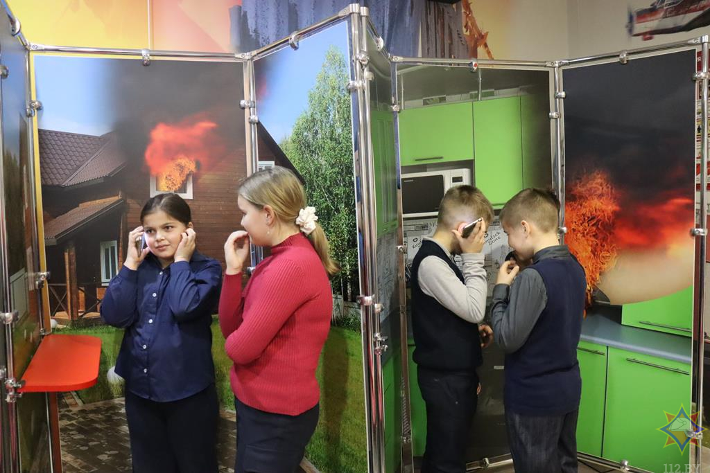 В продолжение мероприятия учащимся необходимо было проверить, насколько они эрудированы; каждый оценил свои знания с помощью мобильного приложения «МЧС Беларуси: помощь рядом» в разделе тестирования на тему безопасного Нового Года. После прохождения тестирования все отправились на площадку «Вызов 112». Одним из заданий, которое необходимо было выполнить, было грамотно и правильно сообщить спасателям о случившейся беде. Яна Валерьевна предлагала различные ситуационные задачки, которые были связаны с атрибутами новогодних праздников. Например, из-за необдуманных поступков и неумелых действий в использовании пиротехнических изделий произошел пожар в жилом доме, и ребята должны были продемонстрировать быстрые и слаженные действия в этой ситуации. Кто справился с заданием лучше и быстрее, тот и победил.