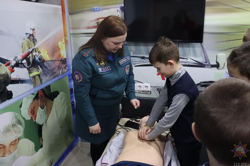 Следующим заданием для ребят было найти ошибки в комнате с нарушениями и повторить правила безопасности в быту. Также учащиеся с радостью послушали алгоритм оказания первой помощи и пробовали свои силы в проведении сердечно-легочной реанимации на специальном манекене. А самые храбрые из ребят прошли задымленный лабиринт и успешно эвакуировались из опасной зоны.